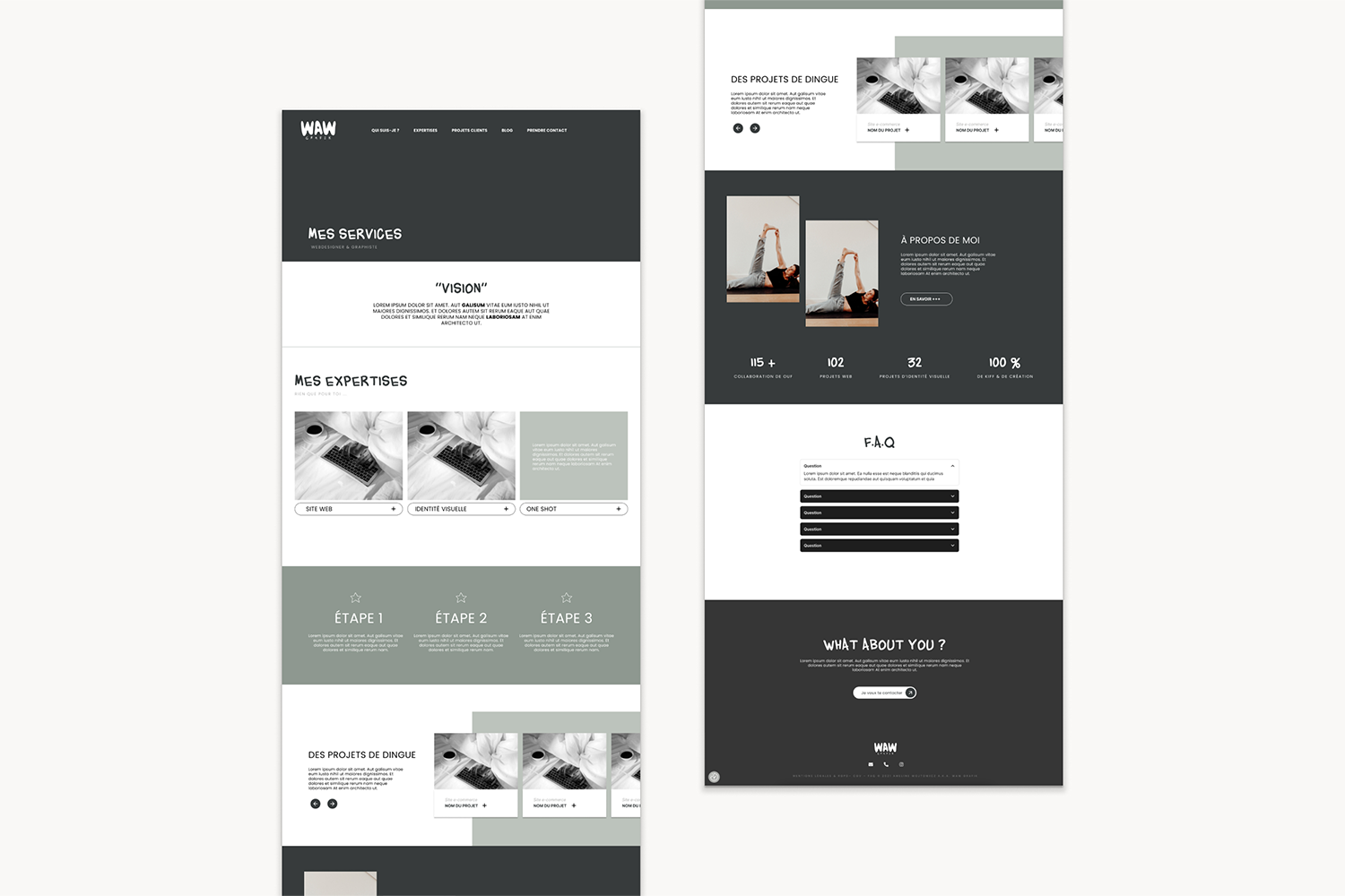 Conception d’un écosystème digital pour WAW GRAFIK aka ITS AMELINE. Ce projet de plateforme web fusionne une architecture de l’information rigoureuse et un design minimaliste pour transformer son expertise multidisciplinaire en une expérience utilisateur mémorable et engageante.