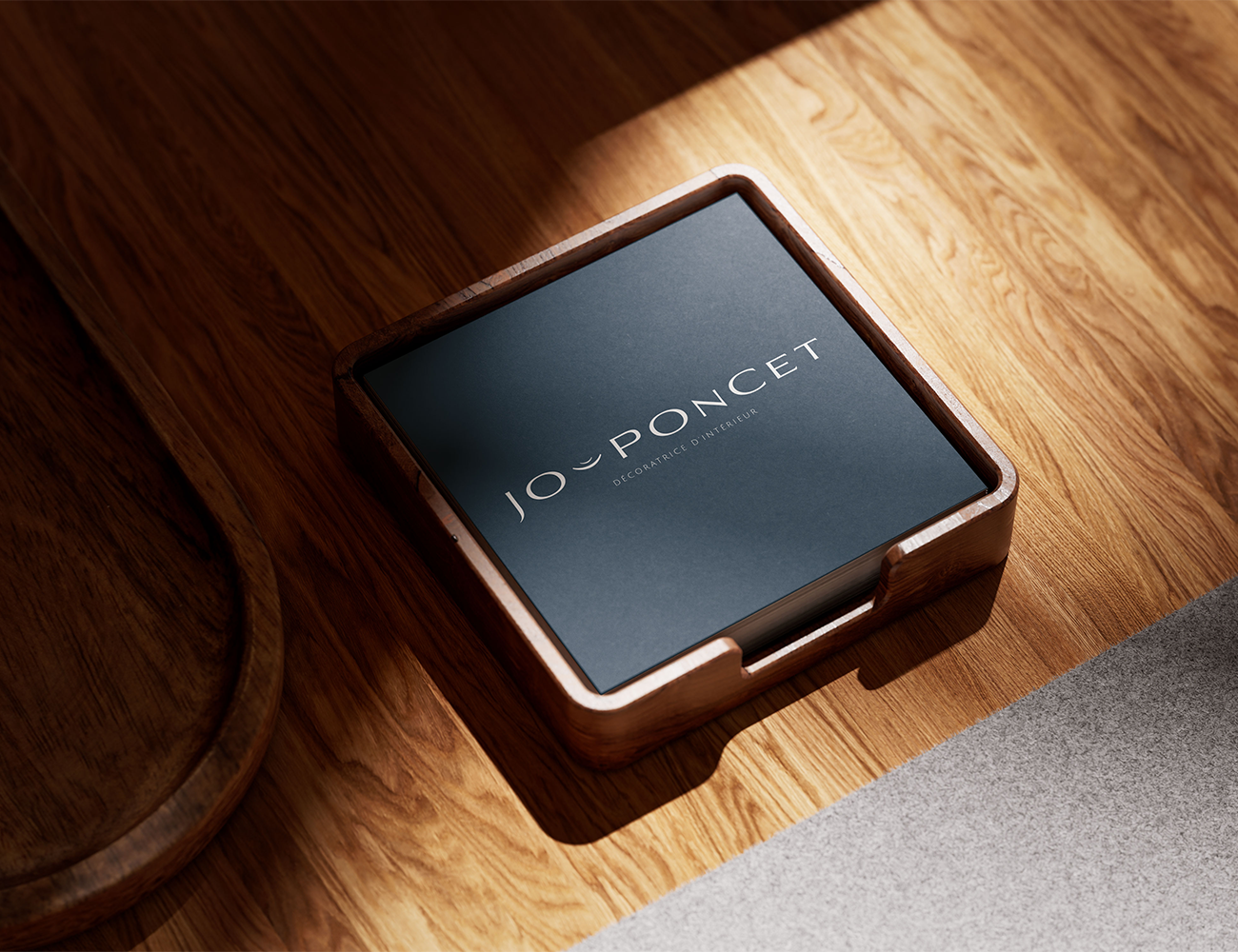 L’enjeu central de cette mission était de traduire graphiquement la précision et la créativité de la décoratrice à travers un système visuel à la fois sobre et prestigieux. Pour répondre à cet objectif, j’ai élaboré une signature graphique centrée sur un bleu nuit profond et une typographie serif élancée, évoquant instantanément le sérieux professionnel et le luxe discret. L’ensemble des livrables, comprenant le logotype minimaliste, les supports de correspondance texturés et la déclinaison sur supports digitaux, a été pensé pour refléter la haute qualité de ses réalisations. Cette identité visuelle cohérente permet désormais à Jo Poncet de s’imposer comme une référence incontournable dans l’univers de l’aménagement d’intérieur haut de gamme.